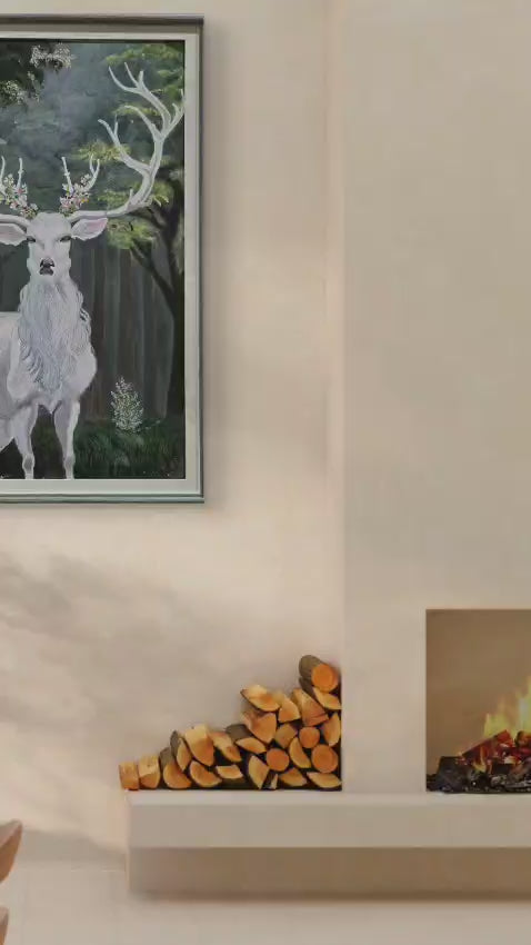 The White Monarch represents purity, wisdom, and quiet authority. Standing still within the depths of the forest, the white deer emerges as a guardian of nature—gentle yet commanding. Its antlers, adorned with delicate blooms, symbolize harmony between strength and sensitivity, reminding us that true power can coexist with grace.